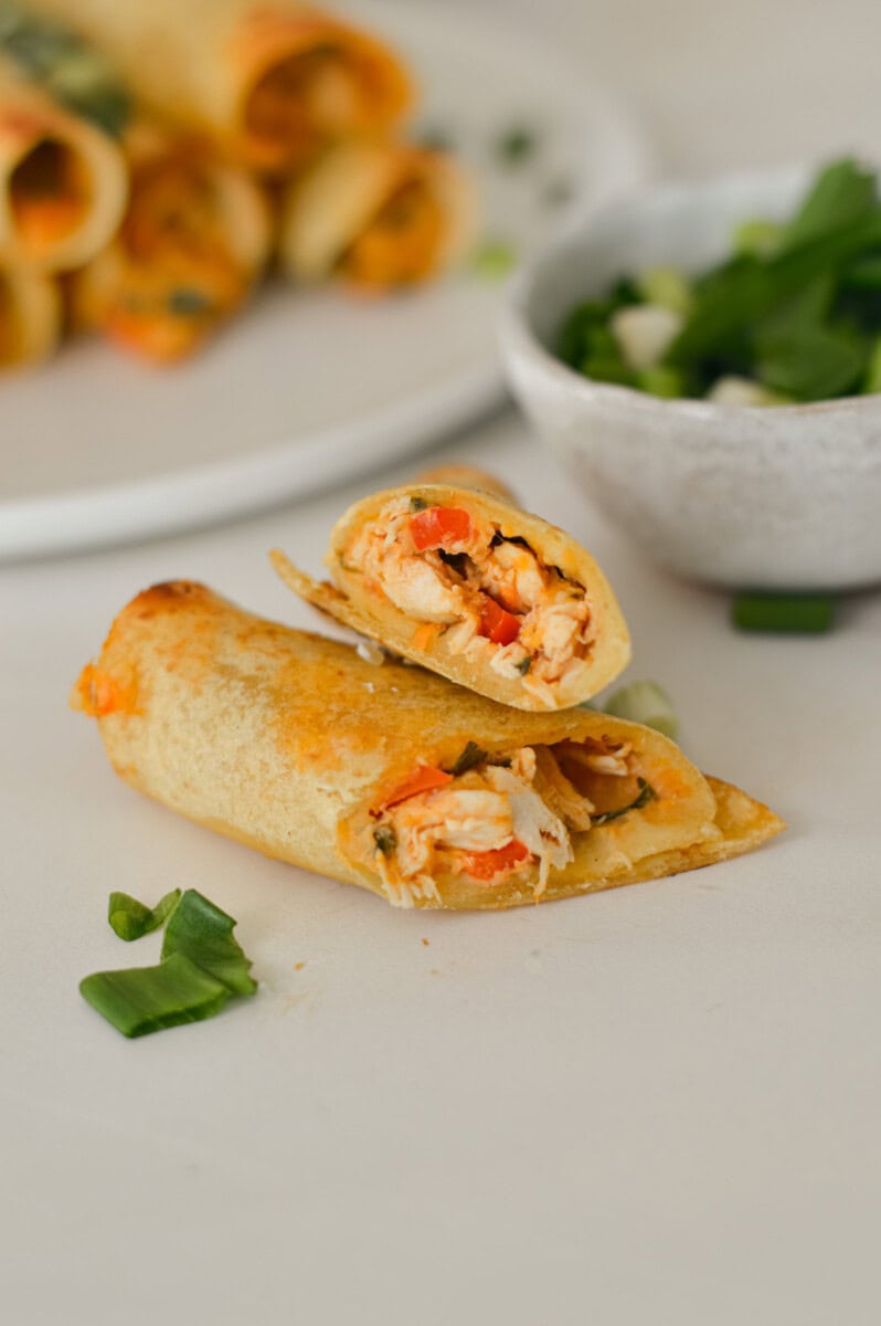 What I really love about this recipe is how much you can pack into one simple, handheld meal. The filling is made with shredded chicken, Greek yogurt, and buffalo sauce, plus white beans and veggies mixed right in. They bake up crispy on the outside and hearty on the inside, and they're just as good packed into a lunch container as they are served hot for dinner.