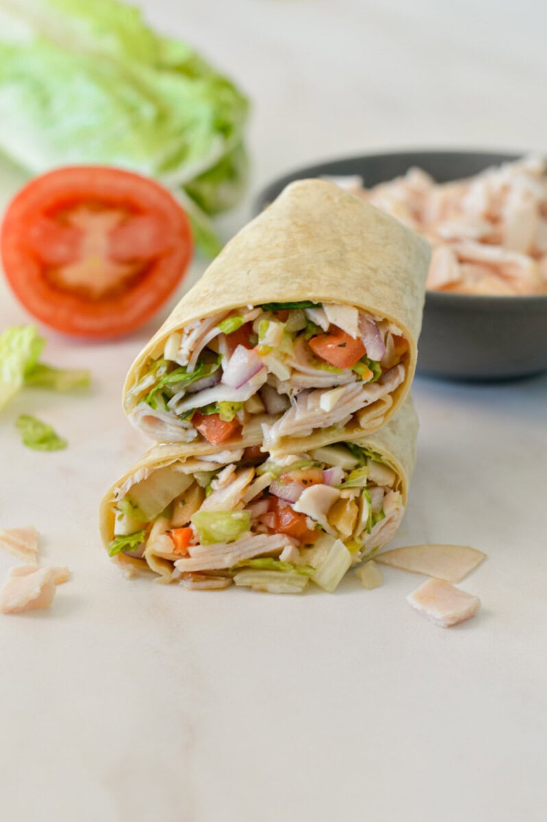 This Italian Chopped Turkey Wrap is an easy, no-cook lunch packed with protein, crisp vegetables, and a simple homemade Italian dressing.